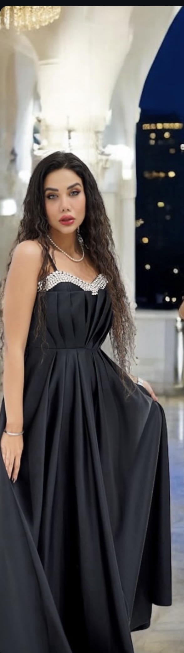 پیراهن مجلسی دخترانه بلند مشکی نگین دوزی کمربنددار - تکرنگ و شک